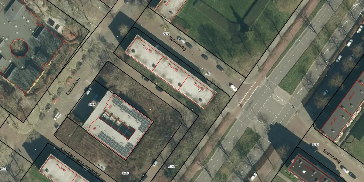Het perceel waarop Solmsweg 34 staat heeft een oppervlakte van 3731 m². Dit is een zeer groot perceel. De perceeloppervlakte wordt geregistreerd door het Kadaster. Gedetailleerde informatie over de maten van dit perceel kunt u vinden in het rapport Kadastrale kaart met maatvoering van Solmsweg 34.