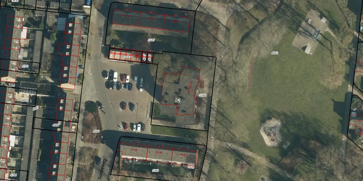 Sonseweg 120-G02 is gelegen op kadastraal perceel WSL01C1544. Deze kadastrale aanduiding is uniek en wordt gebruikt door het Kadaster om eigendomsrechten en andere zakelijke rechten vast te leggen. Het perceel maakt onderdeel uit van de kadastrale gemeente Woensel.