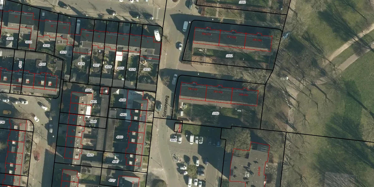 Sonseweg 246 is gelegen op kadastraal perceel WSL01C1550. Deze kadastrale aanduiding is uniek en wordt gebruikt door het Kadaster om eigendomsrechten en andere zakelijke rechten vast te leggen. Het perceel maakt onderdeel uit van de kadastrale gemeente Woensel.