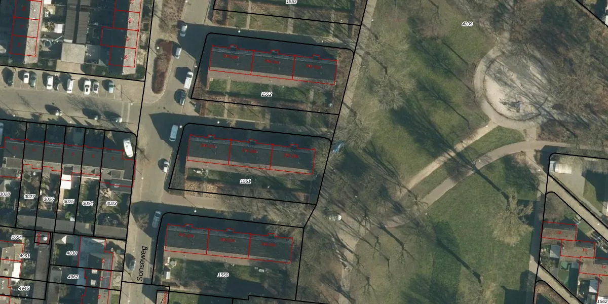 Sonseweg 284 is gelegen op kadastraal perceel WSL01C1551. Deze kadastrale aanduiding is uniek en wordt gebruikt door het Kadaster om eigendomsrechten en andere zakelijke rechten vast te leggen. Het perceel maakt onderdeel uit van de kadastrale gemeente Woensel.