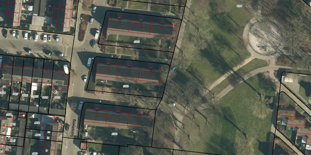 Sonseweg 288 is gelegen op kadastraal perceel WSL01C1551. Deze kadastrale aanduiding is uniek en wordt gebruikt door het Kadaster om eigendomsrechten en andere zakelijke rechten vast te leggen. Het perceel maakt onderdeel uit van de kadastrale gemeente Woensel.
