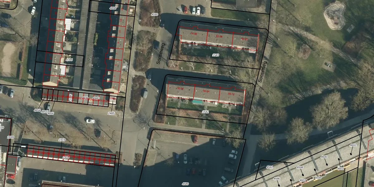 Sonseweg 56 is gelegen op kadastraal perceel WSL01C1542. Deze kadastrale aanduiding is uniek en wordt gebruikt door het Kadaster om eigendomsrechten en andere zakelijke rechten vast te leggen. Het perceel maakt onderdeel uit van de kadastrale gemeente Woensel.