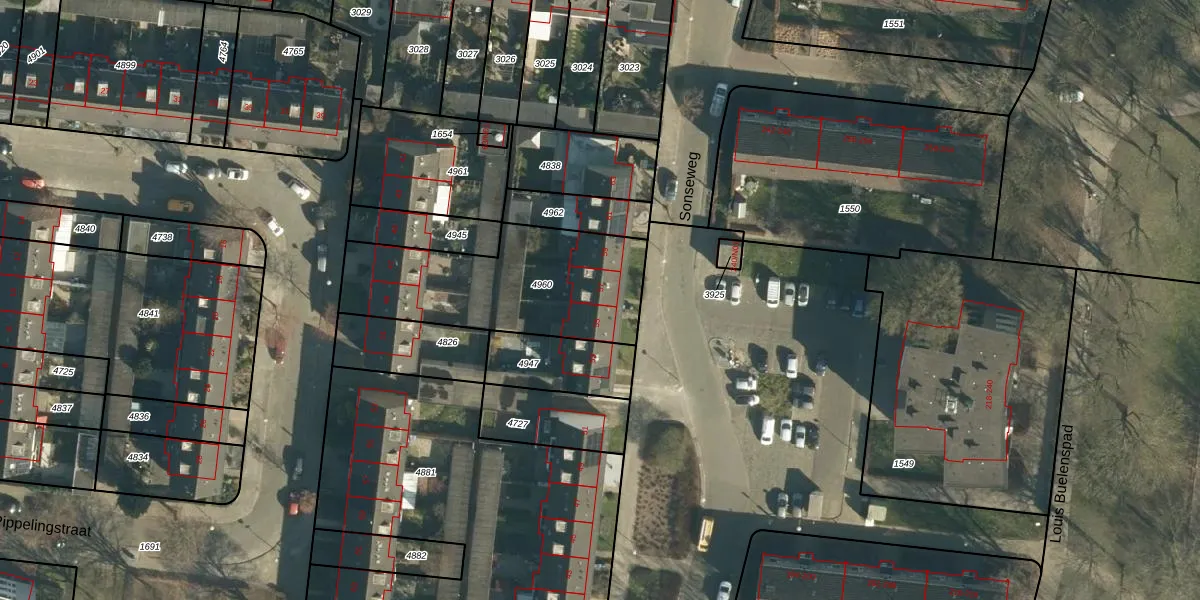 Sonseweg 57 is gelegen op kadastraal perceel WSL01C4960. Deze kadastrale aanduiding is uniek en wordt gebruikt door het Kadaster om eigendomsrechten en andere zakelijke rechten vast te leggen. Het perceel maakt onderdeel uit van de kadastrale gemeente Woensel.