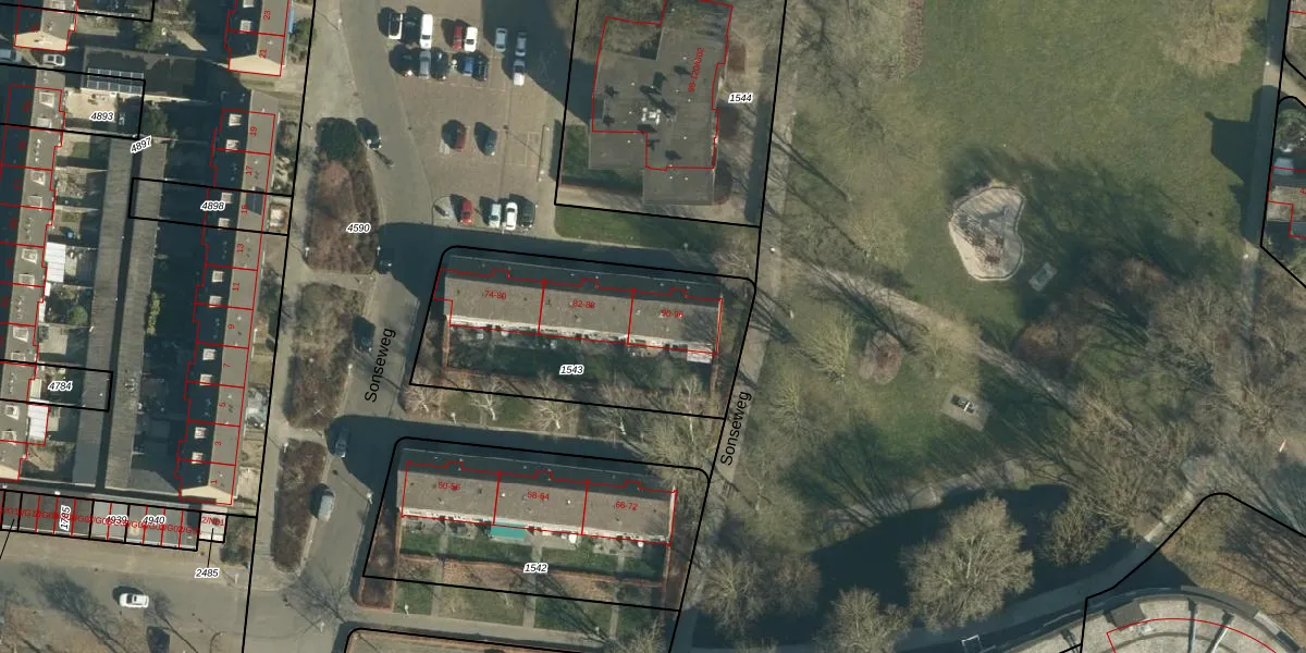 Sonseweg 94 is gelegen op kadastraal perceel WSL01C1543. Deze kadastrale aanduiding is uniek en wordt gebruikt door het Kadaster om eigendomsrechten en andere zakelijke rechten vast te leggen. Het perceel maakt onderdeel uit van de kadastrale gemeente Woensel.