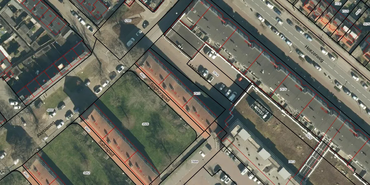 Het perceel waarop Sophorapad 23 staat heeft een oppervlakte van 760 m². Dit is een groot perceel. De perceeloppervlakte wordt geregistreerd door het Kadaster. Gedetailleerde informatie over de maten van dit perceel kunt u vinden in het rapport Kadastrale kaart met maatvoering van Sophorapad 23.