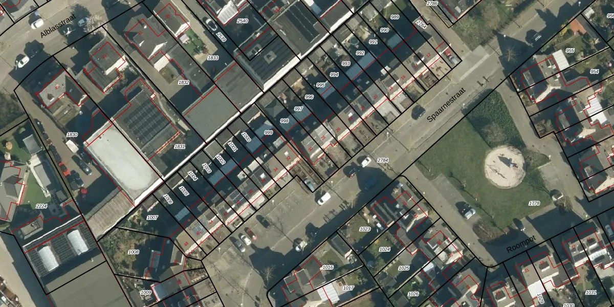 Gebruik de zoekbalk of klik op een perceel voor informatie over de adressen binnen dit perceel.
