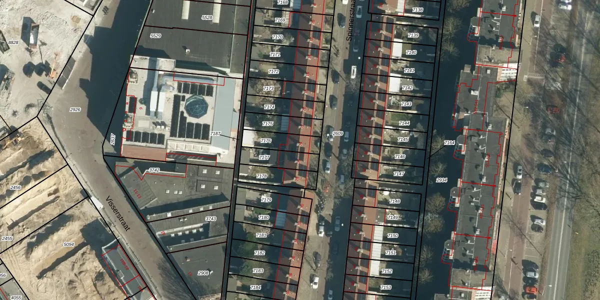 Spinnerstraat 24 is gelegen op kadastraal perceel WSL01G7176. Deze kadastrale aanduiding is uniek en wordt gebruikt door het Kadaster om eigendomsrechten en andere zakelijke rechten vast te leggen. Het perceel maakt onderdeel uit van de kadastrale gemeente Woensel.