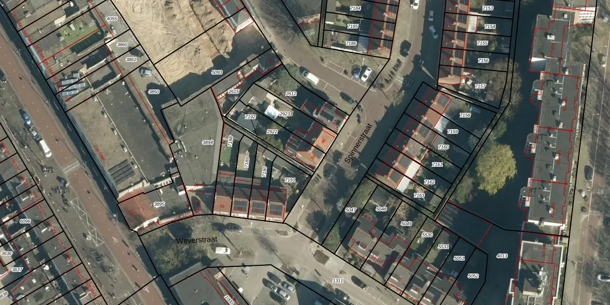 Spinnerstraat 50 is gelegen op kadastraal perceel WSL01G2922. Deze kadastrale aanduiding is uniek en wordt gebruikt door het Kadaster om eigendomsrechten en andere zakelijke rechten vast te leggen. Het perceel maakt onderdeel uit van de kadastrale gemeente Woensel.