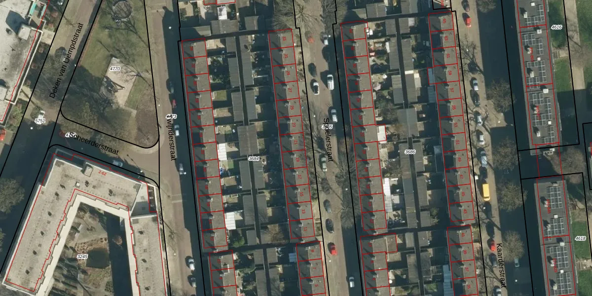 Spoelerstraat 21 is gelegen op kadastraal perceel WSL01G3684. Deze kadastrale aanduiding is uniek en wordt gebruikt door het Kadaster om eigendomsrechten en andere zakelijke rechten vast te leggen. Het perceel maakt onderdeel uit van de kadastrale gemeente Woensel.