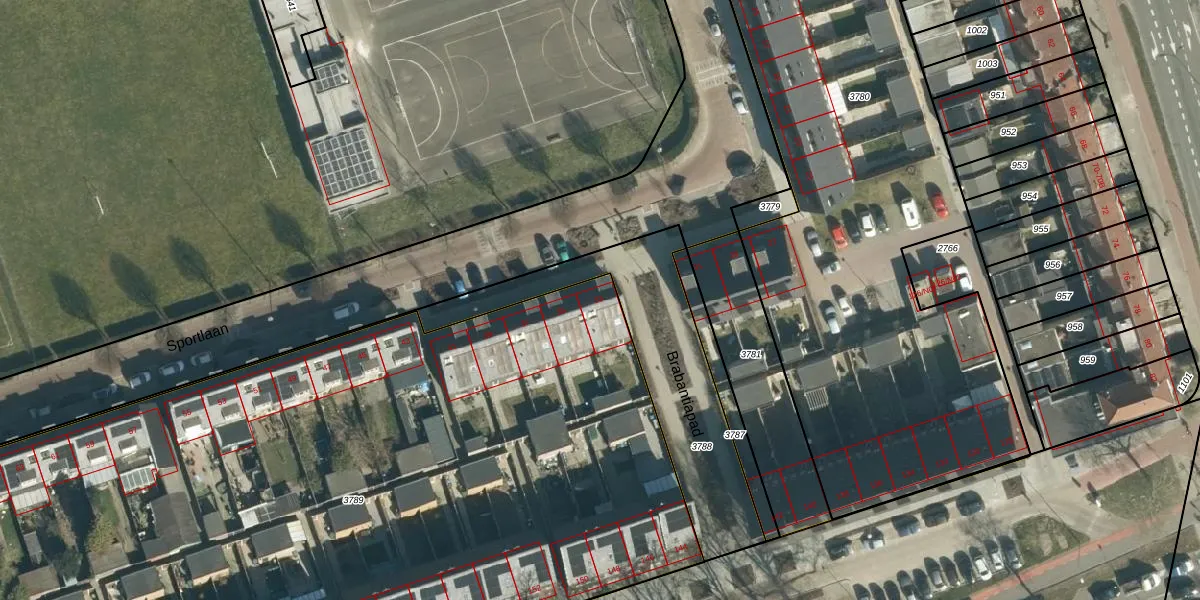 Sportlaan 33 is gelegen op kadastraal perceel STR03D3789. Deze kadastrale aanduiding is uniek en wordt gebruikt door het Kadaster om eigendomsrechten en andere zakelijke rechten vast te leggen. Het perceel maakt onderdeel uit van de kadastrale gemeente Strijp.
