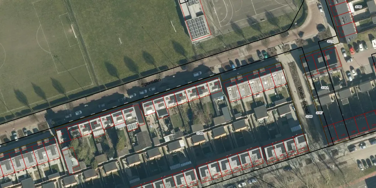 Sportlaan 47 is gelegen op kadastraal perceel STR03D3789. Deze kadastrale aanduiding is uniek en wordt gebruikt door het Kadaster om eigendomsrechten en andere zakelijke rechten vast te leggen. Het perceel maakt onderdeel uit van de kadastrale gemeente Strijp.