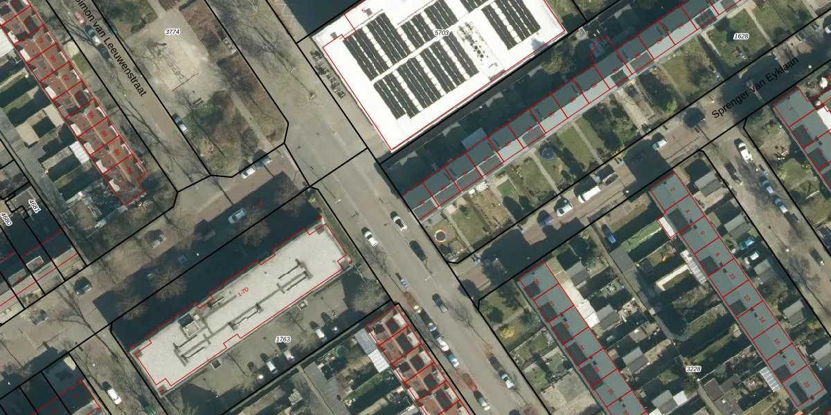 Sprenger van Eyklaan 48 is gelegen op kadastraal perceel STR03C1628. Deze kadastrale aanduiding is uniek en wordt gebruikt door het Kadaster om eigendomsrechten en andere zakelijke rechten vast te leggen. Het perceel maakt onderdeel uit van de kadastrale gemeente Strijp.