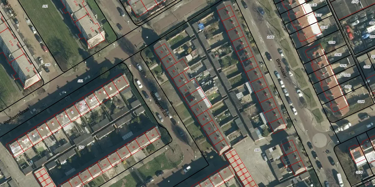 Springerstraat 36 is gelegen op kadastraal perceel WSL01P160. Deze kadastrale aanduiding is uniek en wordt gebruikt door het Kadaster om eigendomsrechten en andere zakelijke rechten vast te leggen. Het perceel maakt onderdeel uit van de kadastrale gemeente Woensel.