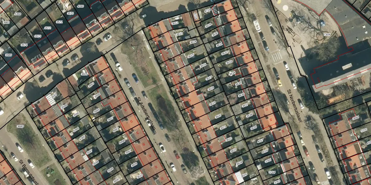St Adelbertuslaan 11 is gelegen op kadastraal perceel STM00E3617. Deze kadastrale aanduiding is uniek en wordt gebruikt door het Kadaster om eigendomsrechten en andere zakelijke rechten vast te leggen. Het perceel maakt onderdeel uit van de kadastrale gemeente Stratum.