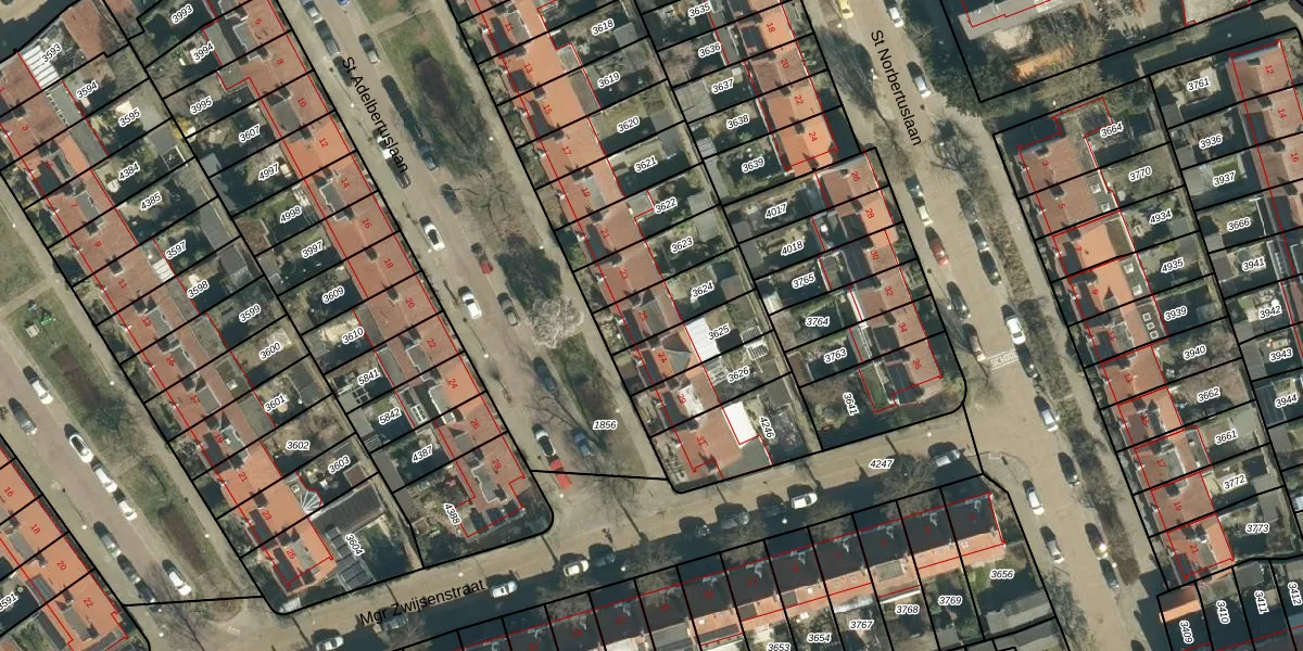 St Adelbertuslaan 25 is gelegen op kadastraal perceel STM00E3624. Deze kadastrale aanduiding is uniek en wordt gebruikt door het Kadaster om eigendomsrechten en andere zakelijke rechten vast te leggen. Het perceel maakt onderdeel uit van de kadastrale gemeente Stratum.
