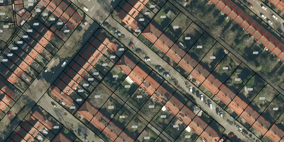Het perceel waarop St Adrianusstraat 12 staat heeft een oppervlakte van 337 m². Dit is een groot perceel. De perceeloppervlakte wordt geregistreerd door het Kadaster. Gedetailleerde informatie over de maten van dit perceel kunt u vinden in het rapport Kadastrale kaart met maatvoering van St Adrianusstraat 12.