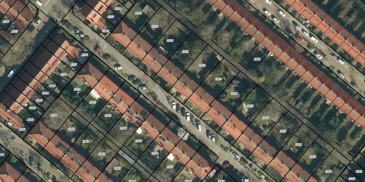 Het perceel waarop St Adrianusstraat 29 staat heeft een oppervlakte van 376 m². Dit is een groot perceel. De perceeloppervlakte wordt geregistreerd door het Kadaster. Gedetailleerde informatie over de maten van dit perceel kunt u vinden in het rapport Kadastrale kaart met maatvoering van St Adrianusstraat 29.