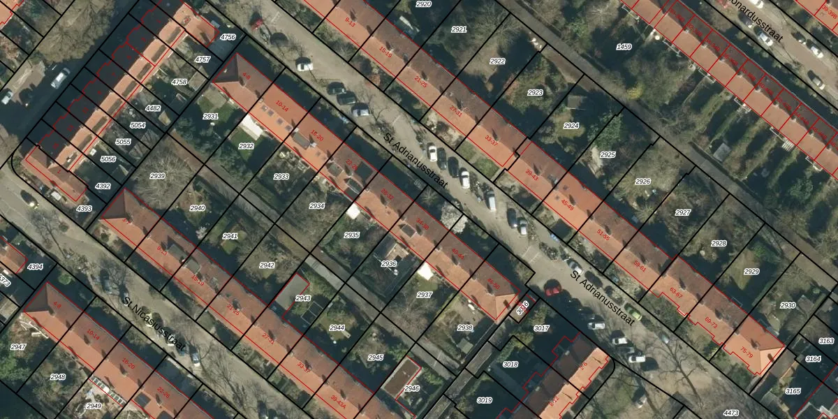 St Adrianusstraat 34 is gelegen op kadastraal perceel STM00E2936. Deze kadastrale aanduiding is uniek en wordt gebruikt door het Kadaster om eigendomsrechten en andere zakelijke rechten vast te leggen. Het perceel maakt onderdeel uit van de kadastrale gemeente Stratum.