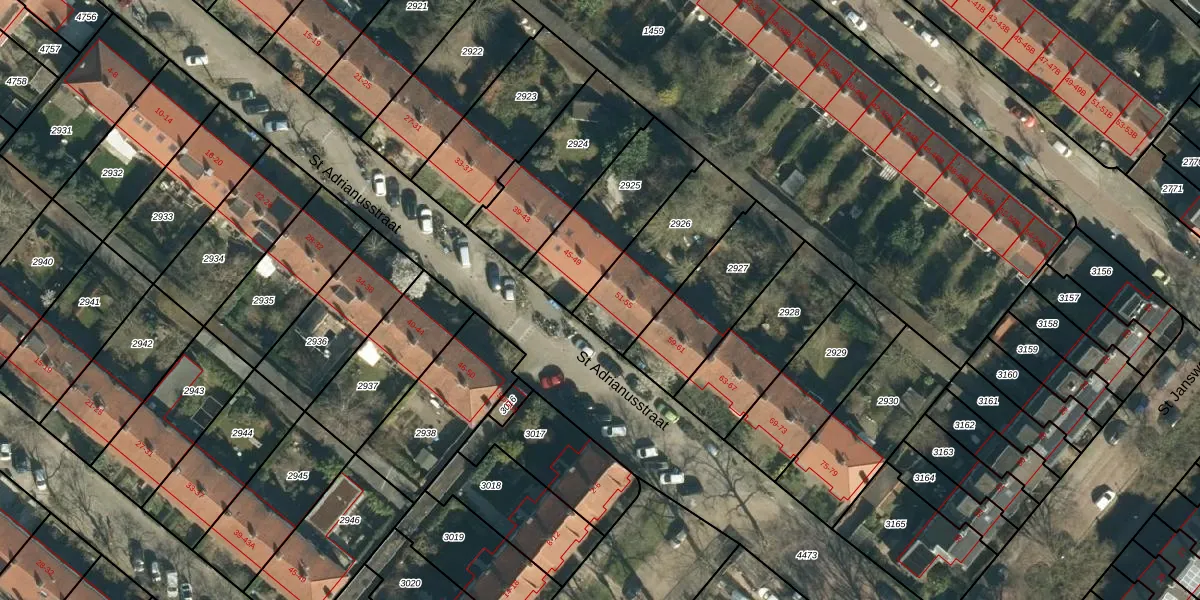 Het perceel waarop St Adrianusstraat 51 staat heeft een oppervlakte van 379 m². Dit is een groot perceel. De perceeloppervlakte wordt geregistreerd door het Kadaster. Gedetailleerde informatie over de maten van dit perceel kunt u vinden in het rapport Kadastrale kaart met maatvoering van St Adrianusstraat 51.