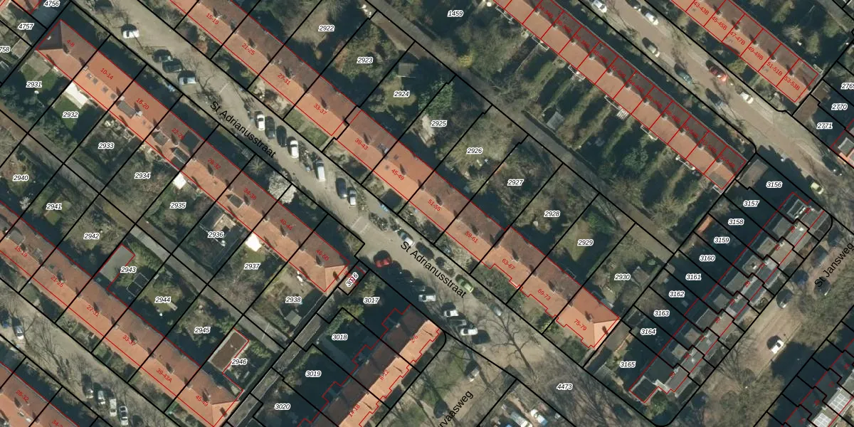 St Adrianusstraat 53 is gelegen op kadastraal perceel STM00E2926. Deze kadastrale aanduiding is uniek en wordt gebruikt door het Kadaster om eigendomsrechten en andere zakelijke rechten vast te leggen. Het perceel maakt onderdeel uit van de kadastrale gemeente Stratum.