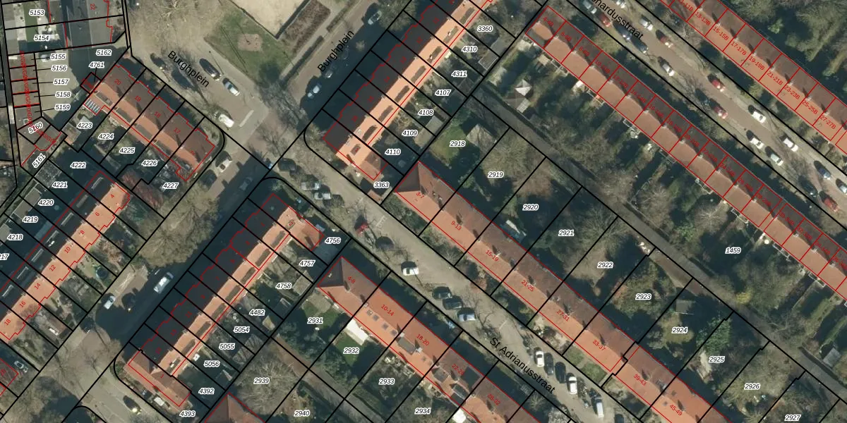 Het perceel waarop St Adrianusstraat 7 staat heeft een oppervlakte van 405 m². Dit is een groot perceel. De perceeloppervlakte wordt geregistreerd door het Kadaster. Gedetailleerde informatie over de maten van dit perceel kunt u vinden in het rapport Kadastrale kaart met maatvoering van St Adrianusstraat 7.