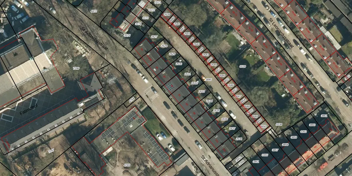 St Adrianusstraat 89 is gelegen op kadastraal perceel STM00E2631. Deze kadastrale aanduiding is uniek en wordt gebruikt door het Kadaster om eigendomsrechten en andere zakelijke rechten vast te leggen. Het perceel maakt onderdeel uit van de kadastrale gemeente Stratum.