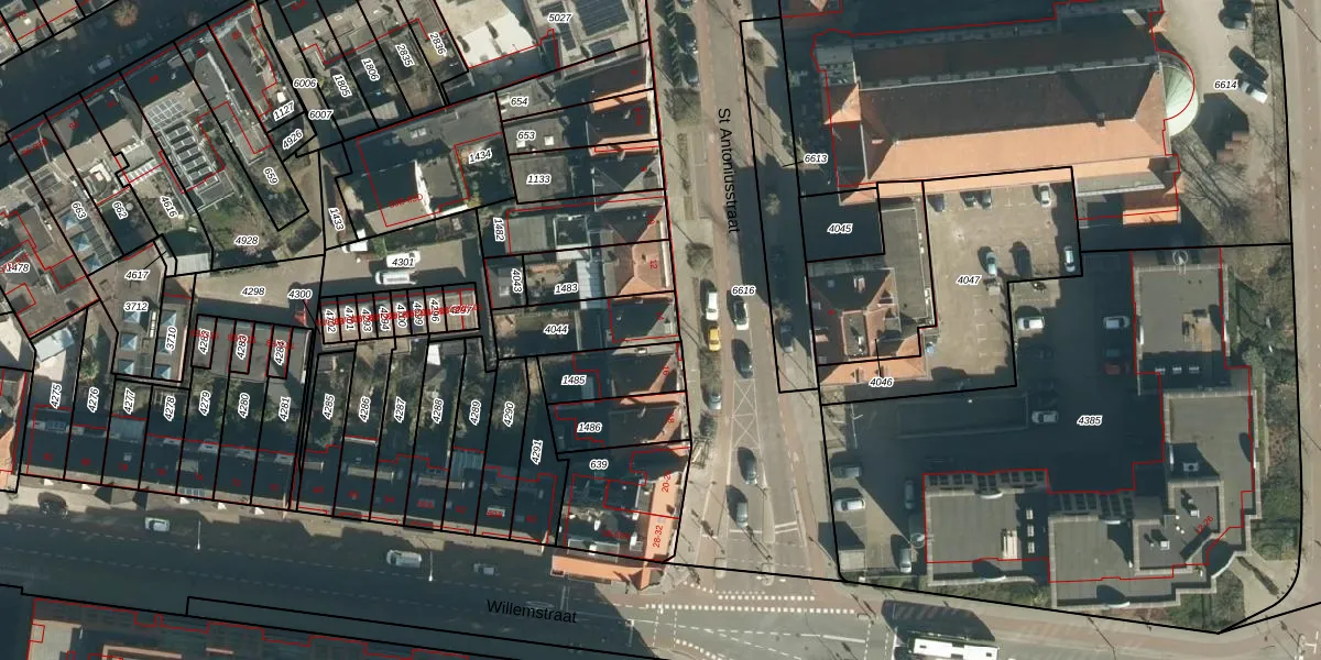 St Antoniusstraat 14 is gelegen op kadastraal perceel STR03C4044. Deze kadastrale aanduiding is uniek en wordt gebruikt door het Kadaster om eigendomsrechten en andere zakelijke rechten vast te leggen. Het perceel maakt onderdeel uit van de kadastrale gemeente Strijp.