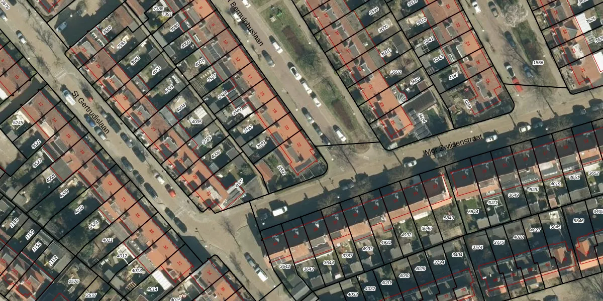 Gebruik de zoekbalk of klik op een perceel voor informatie over de adressen binnen dit perceel.