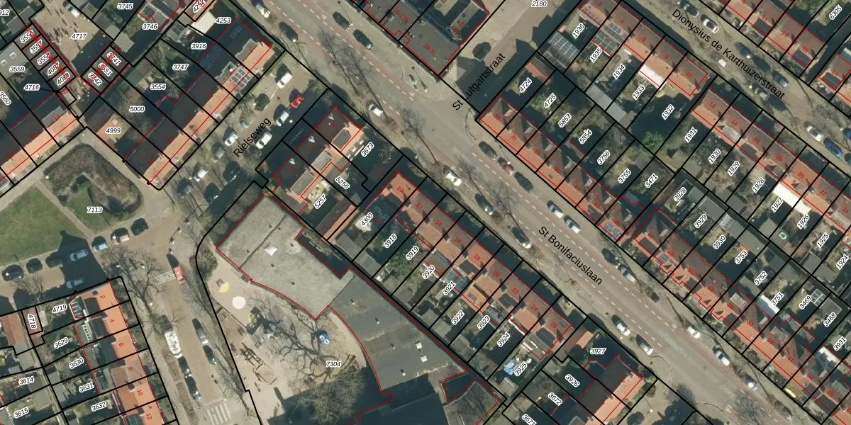 St Bonifaciuslaan 12 is gelegen op kadastraal perceel STM00E3918. Deze kadastrale aanduiding is uniek en wordt gebruikt door het Kadaster om eigendomsrechten en andere zakelijke rechten vast te leggen. Het perceel maakt onderdeel uit van de kadastrale gemeente Stratum.