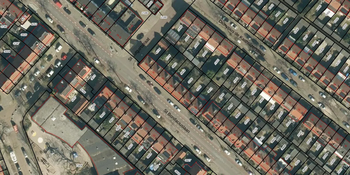 St Bonifaciuslaan 39 is gelegen op kadastraal perceel STM00E5854. Deze kadastrale aanduiding is uniek en wordt gebruikt door het Kadaster om eigendomsrechten en andere zakelijke rechten vast te leggen. Het perceel maakt onderdeel uit van de kadastrale gemeente Stratum.