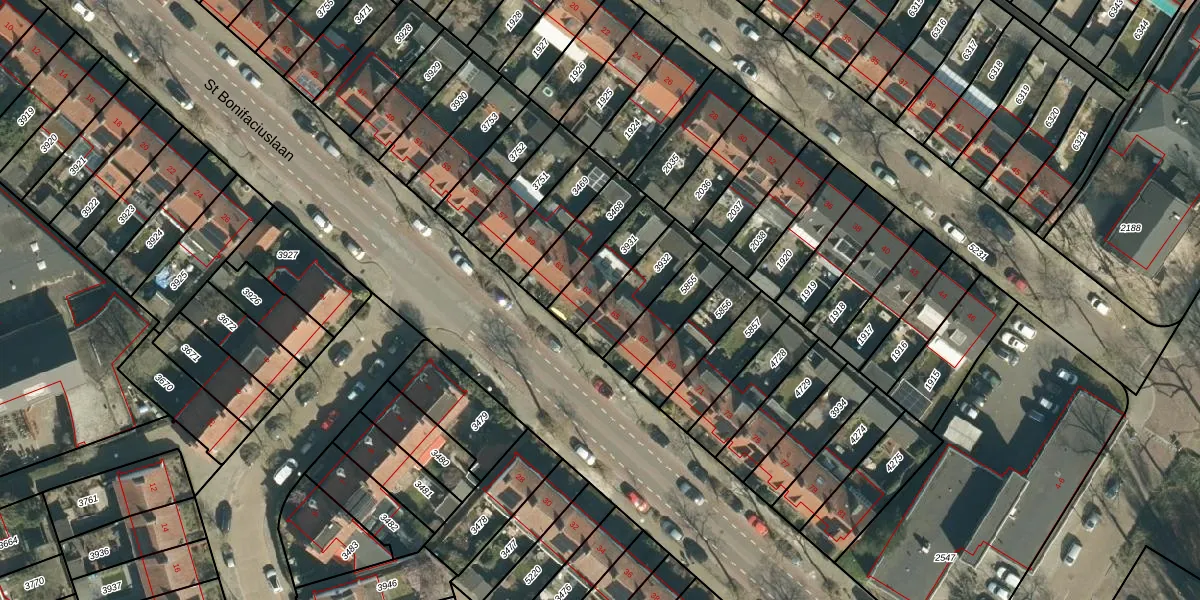 Het perceel waarop St Bonifaciuslaan 63 staat heeft een oppervlakte van 158 m². Dit is een middelgroot perceel. De perceeloppervlakte wordt geregistreerd door het Kadaster. Gedetailleerde informatie over de maten van dit perceel kunt u vinden in het rapport Kadastrale kaart met maatvoering van St Bonifaciuslaan 63.