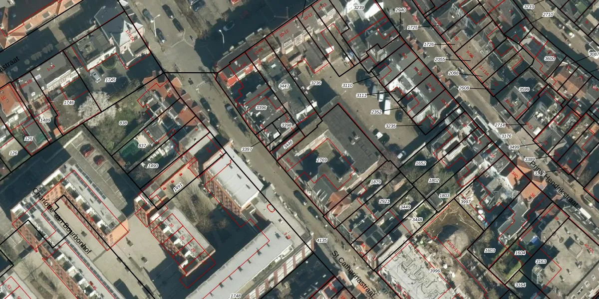 St Catharinastraat 1-G is gelegen op kadastraal perceel EHV00D2769. Deze kadastrale aanduiding is uniek en wordt gebruikt door het Kadaster om eigendomsrechten en andere zakelijke rechten vast te leggen. Het perceel maakt onderdeel uit van de kadastrale gemeente Eindhoven.