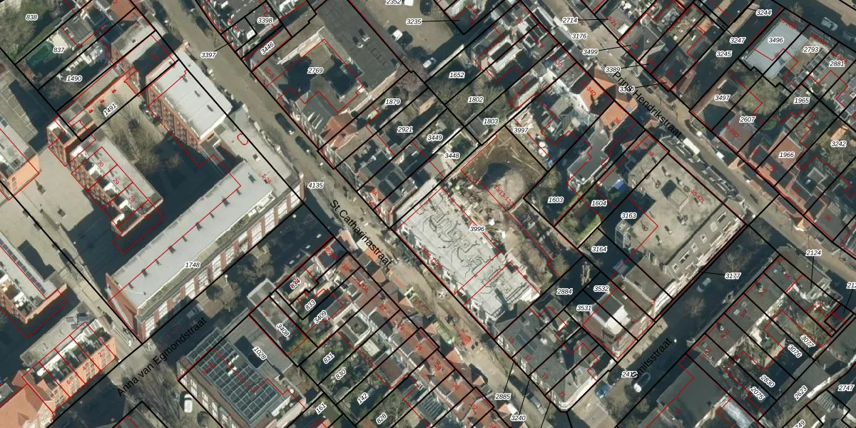 St Catharinastraat 13-12 is gelegen op kadastraal perceel EHV00D3996. Deze kadastrale aanduiding is uniek en wordt gebruikt door het Kadaster om eigendomsrechten en andere zakelijke rechten vast te leggen. Het perceel maakt onderdeel uit van de kadastrale gemeente Eindhoven.