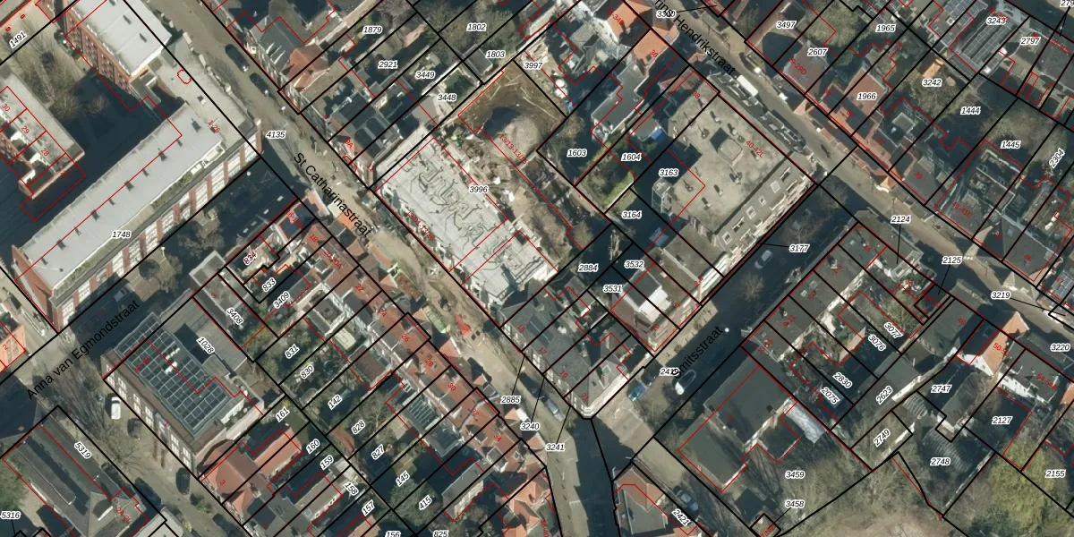 St Catharinastraat 13-22 is gelegen op kadastraal perceel EHV00D3996. Deze kadastrale aanduiding is uniek en wordt gebruikt door het Kadaster om eigendomsrechten en andere zakelijke rechten vast te leggen. Het perceel maakt onderdeel uit van de kadastrale gemeente Eindhoven.