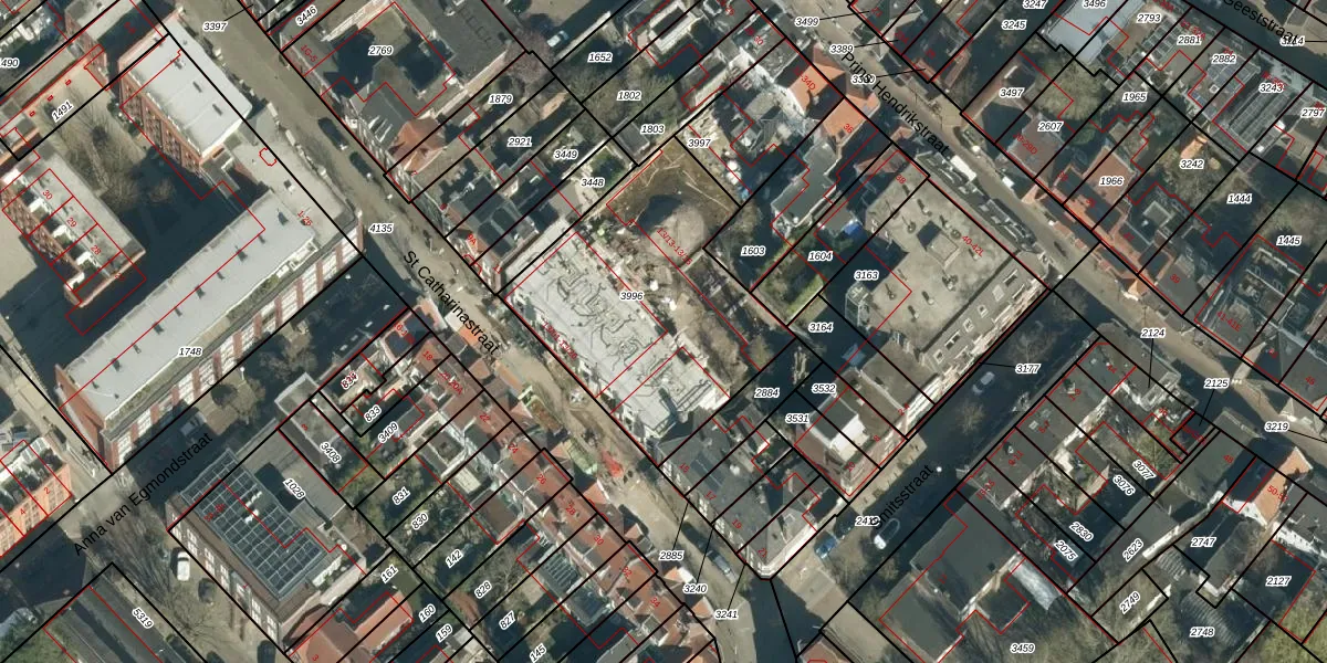 St Catharinastraat 13-24 is gelegen op kadastraal perceel EHV00D3996. Deze kadastrale aanduiding is uniek en wordt gebruikt door het Kadaster om eigendomsrechten en andere zakelijke rechten vast te leggen. Het perceel maakt onderdeel uit van de kadastrale gemeente Eindhoven.