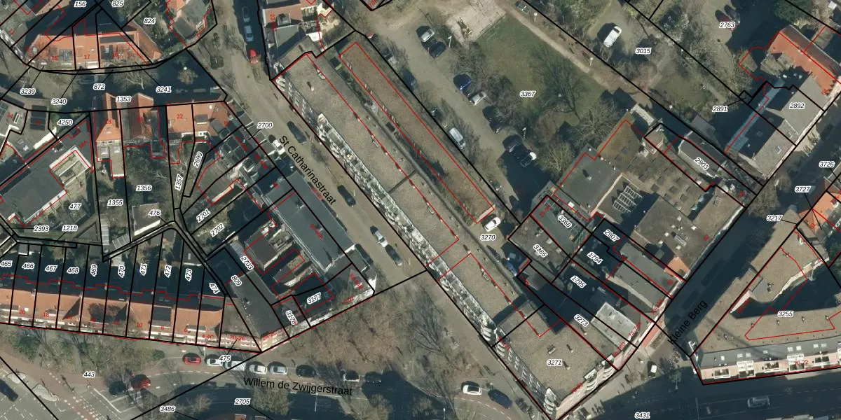 Het perceel waarop St Catharinastraat 61 staat heeft een oppervlakte van 1825 m². Dit is een zeer groot perceel. De perceeloppervlakte wordt geregistreerd door het Kadaster. Gedetailleerde informatie over de maten van dit perceel kunt u vinden in het rapport Kadastrale kaart met maatvoering van St Catharinastraat 61.