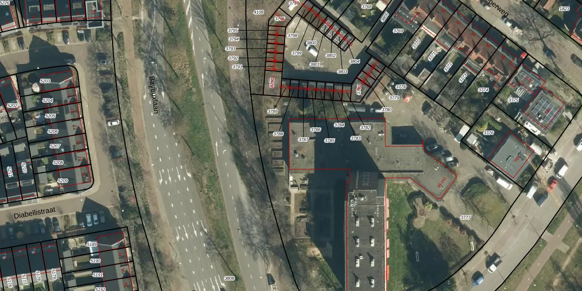 Het perceel waarop St Claralaan 100 staat heeft een oppervlakte van 5142 m². Dit is een zeer groot perceel. De perceeloppervlakte wordt geregistreerd door het Kadaster. Gedetailleerde informatie over de maten van dit perceel kunt u vinden in het rapport Kadastrale kaart met maatvoering van St Claralaan 100.