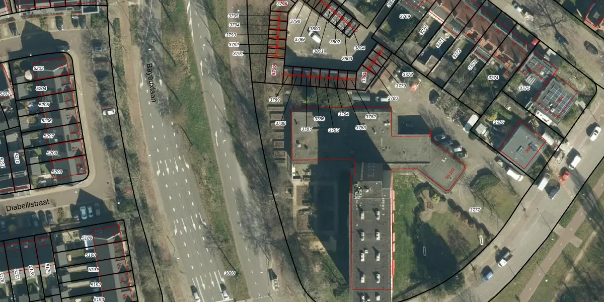Het perceel waarop het adres ligt is GTL01-C-3777. De afkorting 'GTL01' staat voor kadastrale gemeente Gestel. De gemiddelde perceeloppervlakte in de kadastrale gemeente Gestel is 1012,11 m². Dit perceel is met zijn 5142 m² dus groter dan gemiddeld. Het grootste perceel in de kadastrale gemeente is 73,6 ha. Het kleinste perceel heeft een oppervlakte van 0 m². Op het perceel zijn 63 adressen aanwezig. De huidige grenzen van het perceel zijn digitaal in de Basisregistratie Kadaster (BRK) geregistreerd op 18-07-2006.