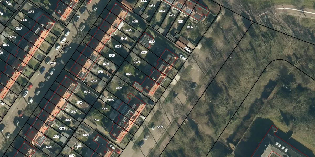 Gebruik de zoekbalk of klik op een perceel voor informatie over de adressen binnen dit perceel.