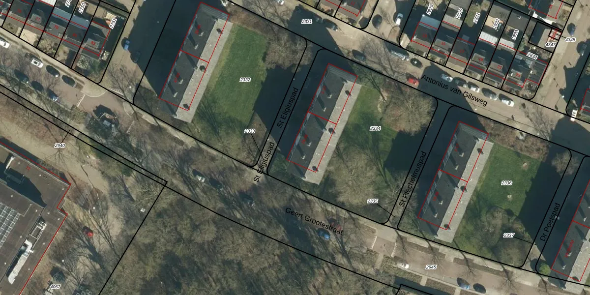 Het perceel waarop St Eligiuspad 27 staat heeft een oppervlakte van 2085 m². Dit is een zeer groot perceel. De perceeloppervlakte wordt geregistreerd door het Kadaster. Gedetailleerde informatie over de maten van dit perceel kunt u vinden in het rapport Kadastrale kaart met maatvoering van St Eligiuspad 27.
