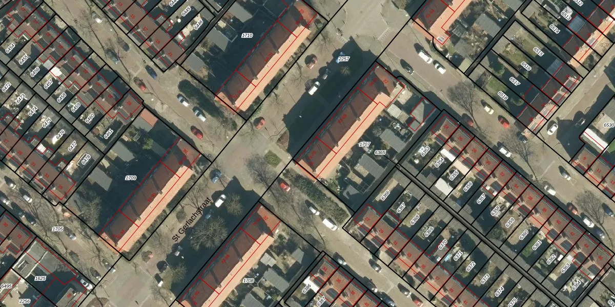 St Gerlachstraat 73 is gelegen op kadastraal perceel STM00E1707. Deze kadastrale aanduiding is uniek en wordt gebruikt door het Kadaster om eigendomsrechten en andere zakelijke rechten vast te leggen. Het perceel maakt onderdeel uit van de kadastrale gemeente Stratum.