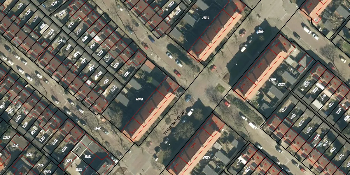 Het perceel waarop St Gerlachstraat 80 staat heeft een oppervlakte van 1195 m². Dit is een zeer groot perceel. De perceeloppervlakte wordt geregistreerd door het Kadaster. Gedetailleerde informatie over de maten van dit perceel kunt u vinden in het rapport Kadastrale kaart met maatvoering van St Gerlachstraat 80.