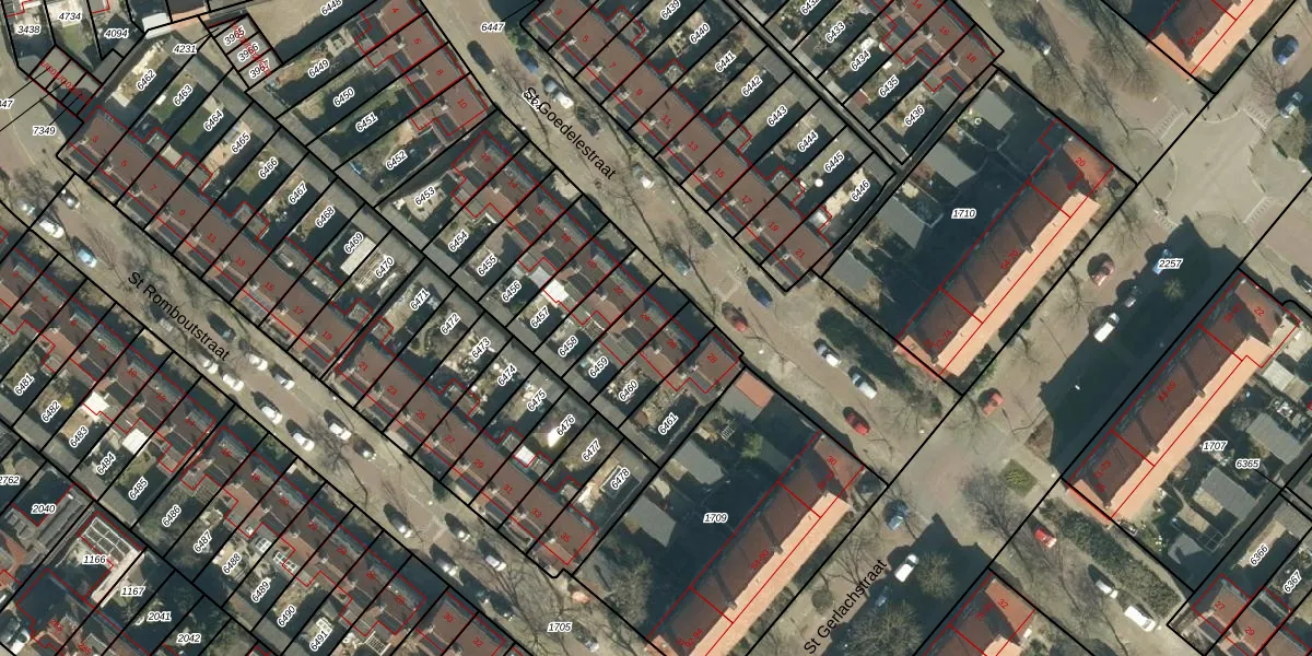 St Goedelestraat 24 is gelegen op kadastraal perceel STM00E6459. Deze kadastrale aanduiding is uniek en wordt gebruikt door het Kadaster om eigendomsrechten en andere zakelijke rechten vast te leggen. Het perceel maakt onderdeel uit van de kadastrale gemeente Stratum.