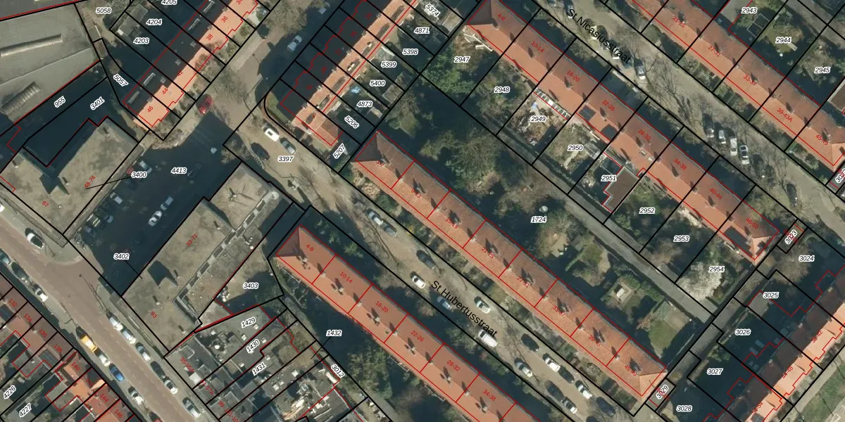 St Hubertusstraat 13 is gelegen op kadastraal perceel STM00E1724. Deze kadastrale aanduiding is uniek en wordt gebruikt door het Kadaster om eigendomsrechten en andere zakelijke rechten vast te leggen. Het perceel maakt onderdeel uit van de kadastrale gemeente Stratum.