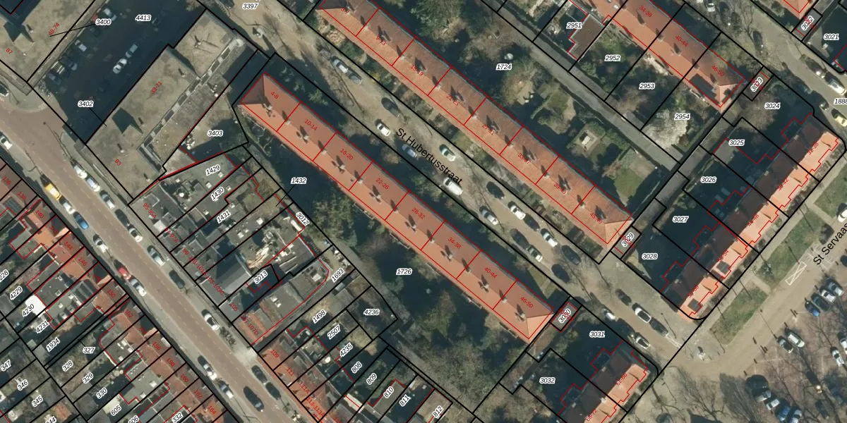 Het perceel waarop St Hubertusstraat 30 staat heeft een oppervlakte van 2550 m². Dit is een zeer groot perceel. De perceeloppervlakte wordt geregistreerd door het Kadaster. Gedetailleerde informatie over de maten van dit perceel kunt u vinden in het rapport Kadastrale kaart met maatvoering van St Hubertusstraat 30.