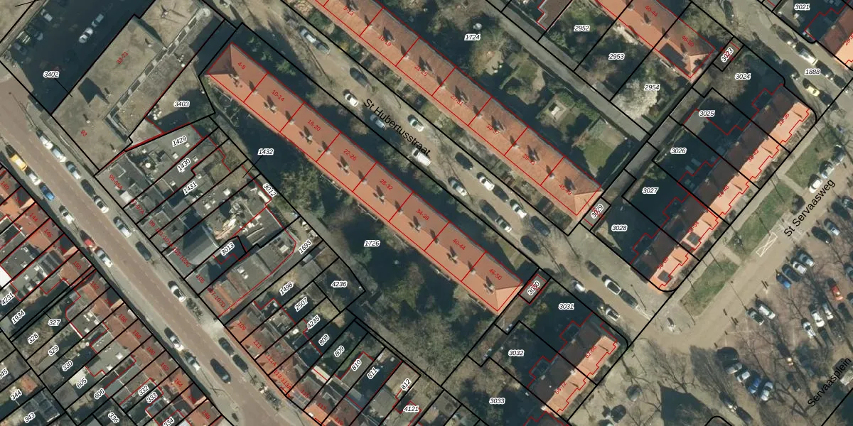 Het perceel waarop St Hubertusstraat 36 staat heeft een oppervlakte van 2550 m². Dit is een zeer groot perceel. De perceeloppervlakte wordt geregistreerd door het Kadaster. Gedetailleerde informatie over de maten van dit perceel kunt u vinden in het rapport Kadastrale kaart met maatvoering van St Hubertusstraat 36.