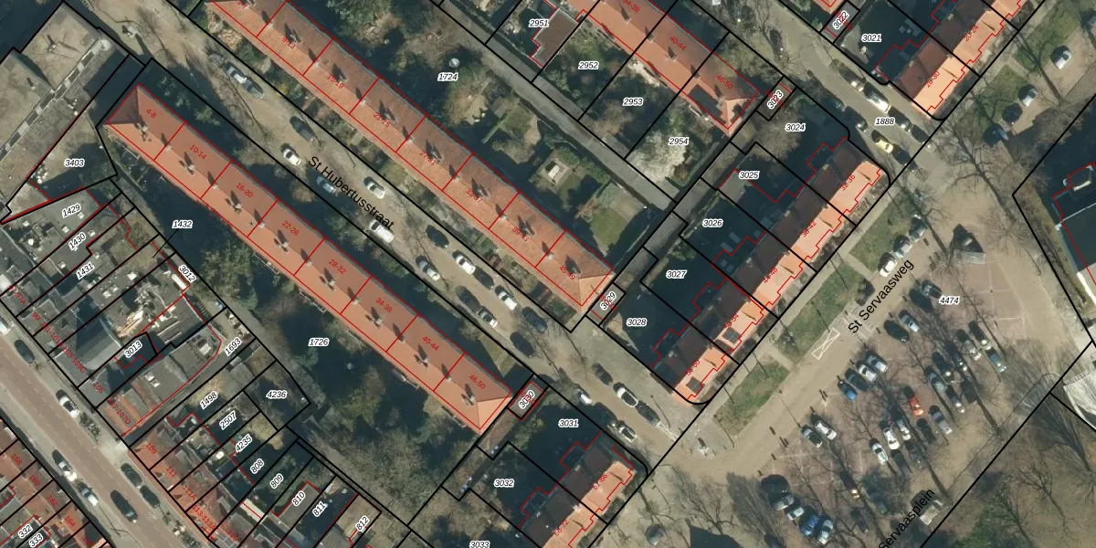 Het perceel waarop St Hubertusstraat 45 staat heeft een oppervlakte van 2755 m². Dit is een zeer groot perceel. De perceeloppervlakte wordt geregistreerd door het Kadaster. Gedetailleerde informatie over de maten van dit perceel kunt u vinden in het rapport Kadastrale kaart met maatvoering van St Hubertusstraat 45.