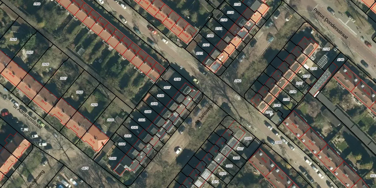 St Jansweg 18 is gelegen op kadastraal perceel STM00E3156. Deze kadastrale aanduiding is uniek en wordt gebruikt door het Kadaster om eigendomsrechten en andere zakelijke rechten vast te leggen. Het perceel maakt onderdeel uit van de kadastrale gemeente Stratum.
