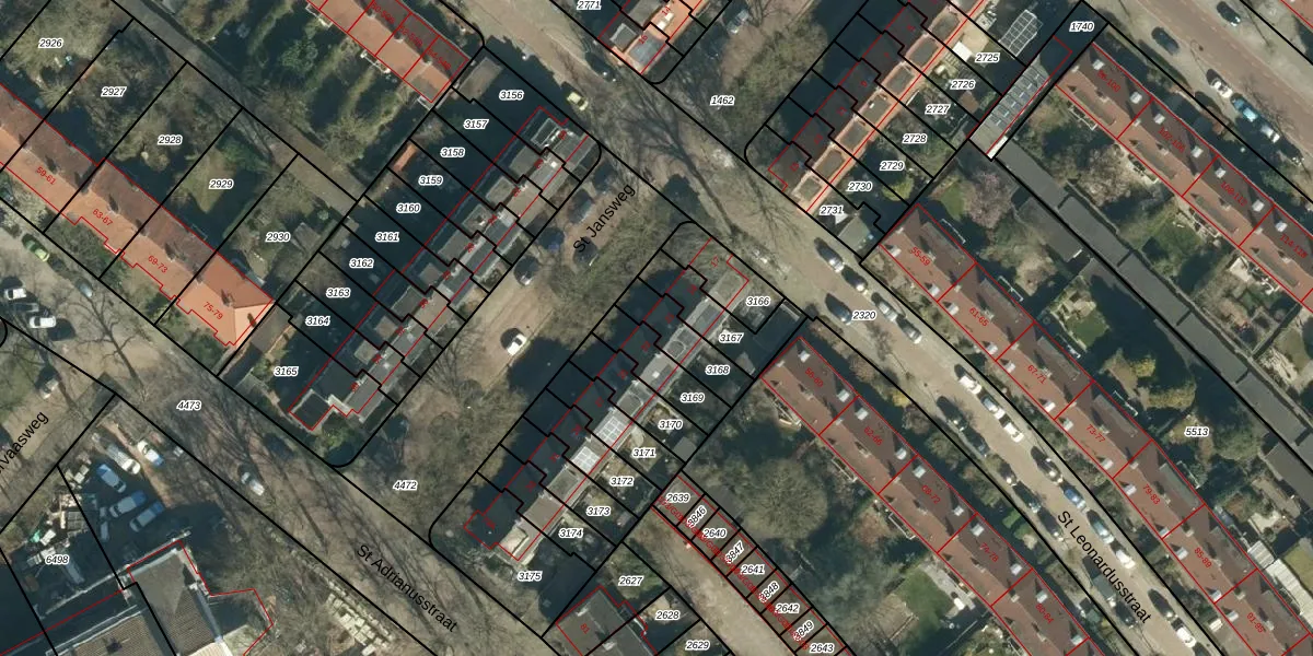 St Jansweg 21 is gelegen op kadastraal perceel STM00E3168. Deze kadastrale aanduiding is uniek en wordt gebruikt door het Kadaster om eigendomsrechten en andere zakelijke rechten vast te leggen. Het perceel maakt onderdeel uit van de kadastrale gemeente Stratum.