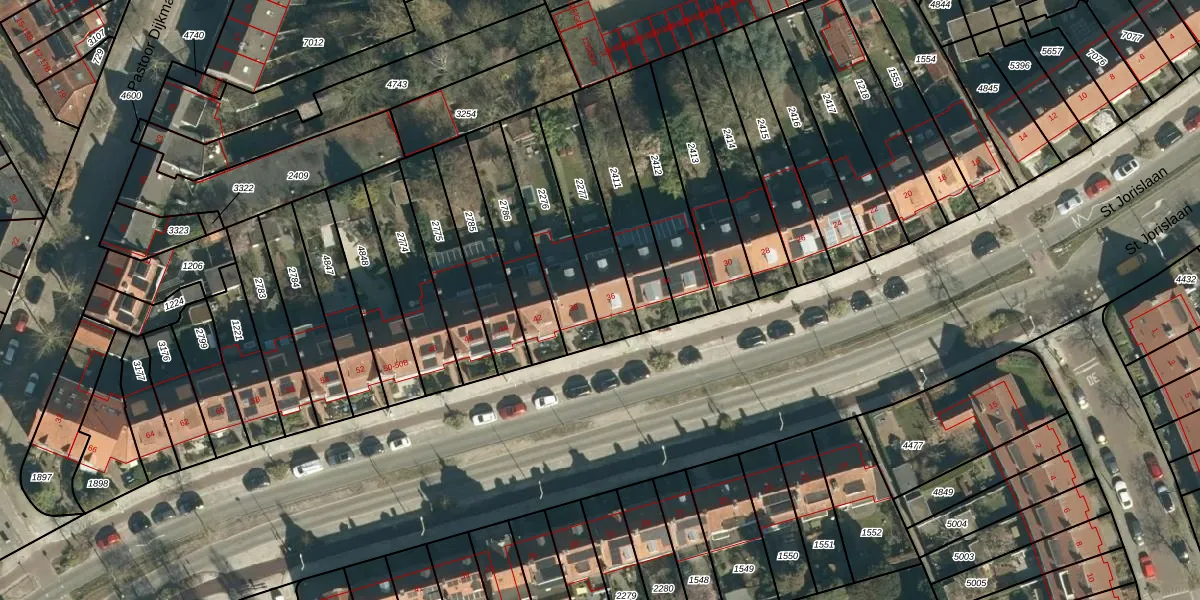 St Jorislaan 36 is gelegen op kadastraal perceel STM00E2277. Deze kadastrale aanduiding is uniek en wordt gebruikt door het Kadaster om eigendomsrechten en andere zakelijke rechten vast te leggen. Het perceel maakt onderdeel uit van de kadastrale gemeente Stratum.